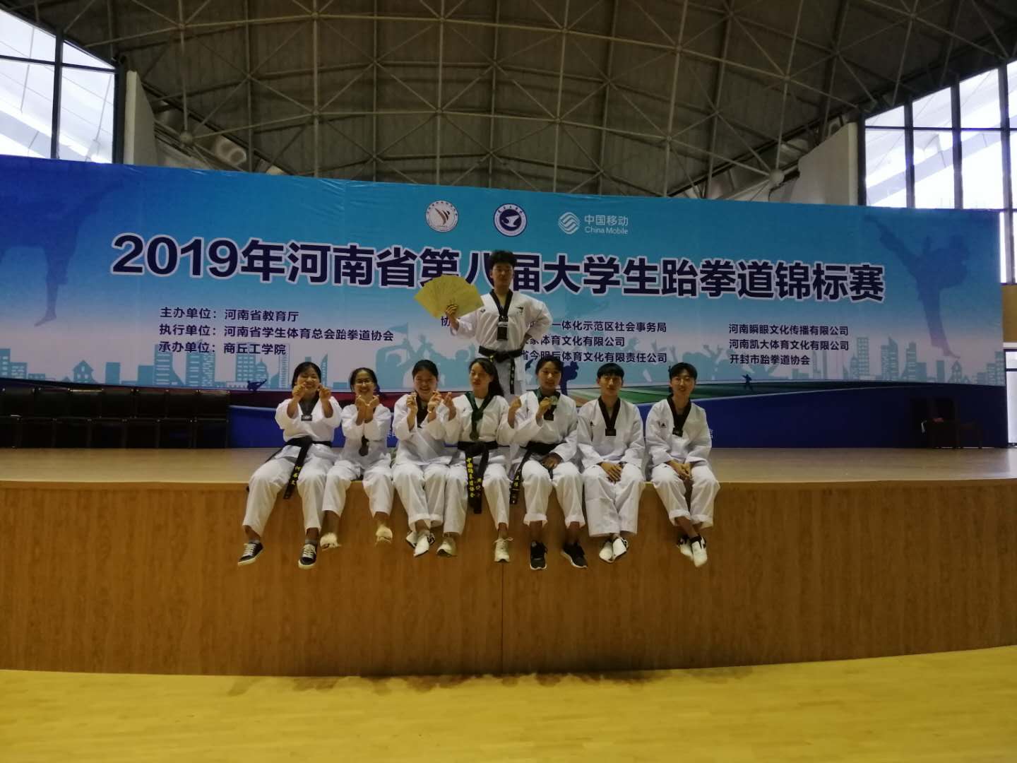 比赛战报;2109年7日10日至15日在商丘工学院举行的河南省大学生第八届跆拳道锦标赛比赛中,我校跆拳道队取得历史性突破。我校跆拳道队员不畏强手,奋力拼搏。